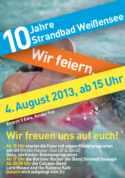Am 4. August 2013 feiert das Strandbad Weißensee sein 10jähriges Bestehen und wir möchten Euch gern dazu einladen, diesen Tag mit uns zu feiern!